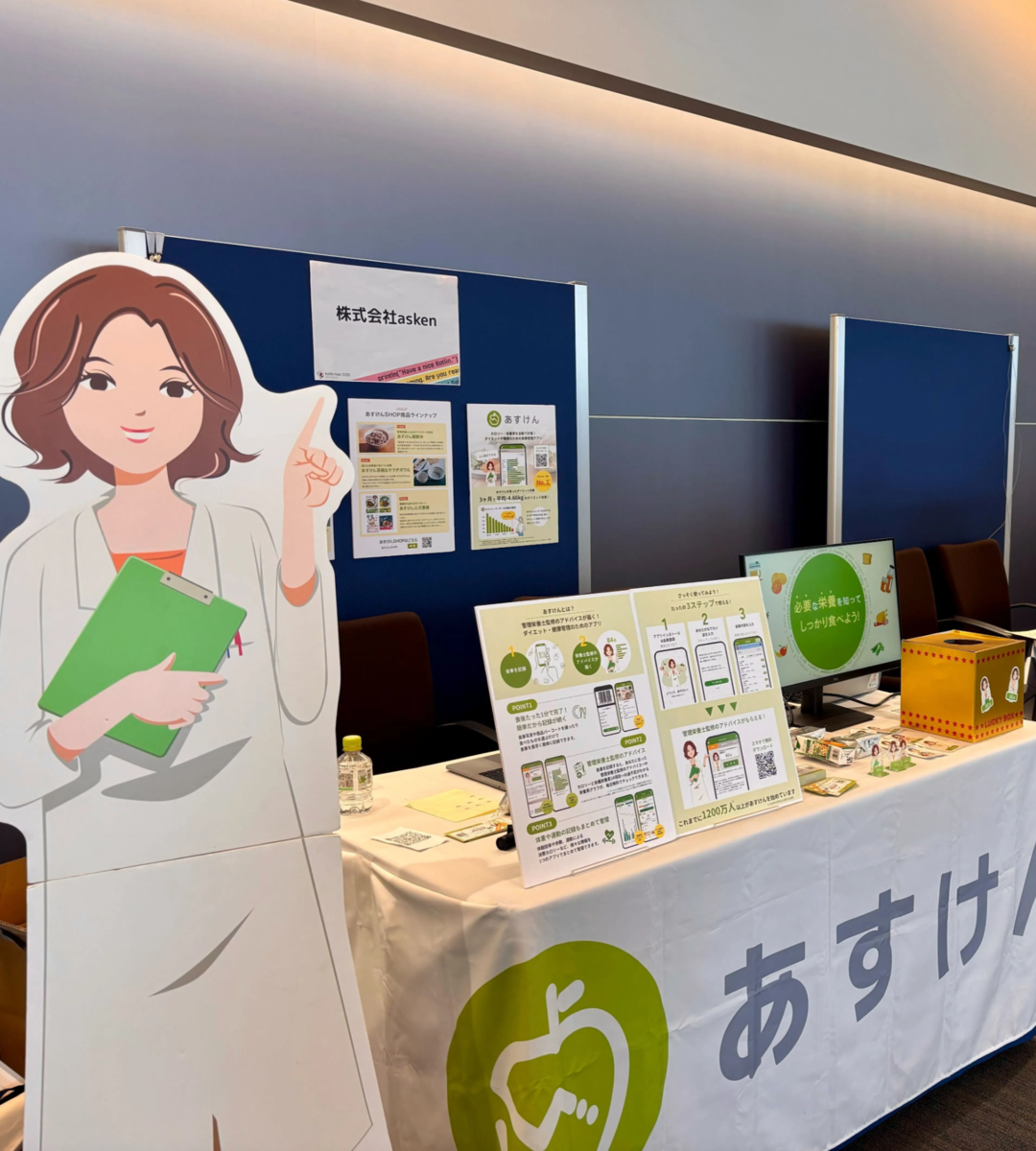 askenのブースでは「あすけん」アプリのサービスを中心に展示をしました。
